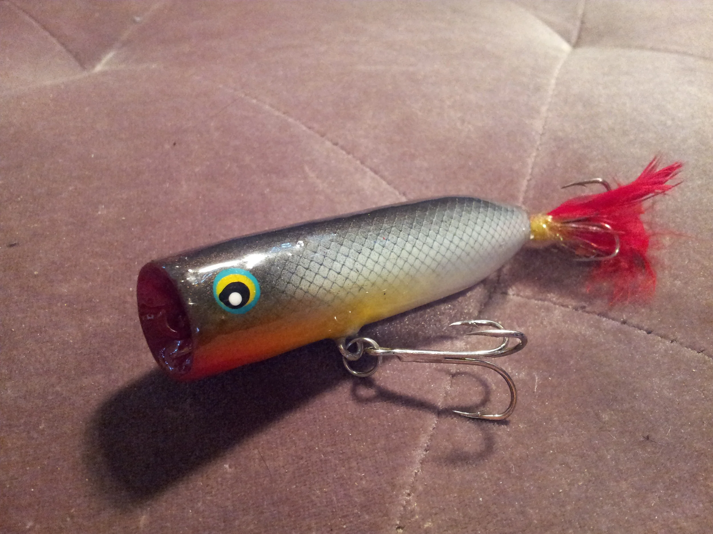 I have been building wooden fishing lures for many years now. I like to use balsa, basswood, cedar and pine. Here are some samples of my work and the fish that fell for them.